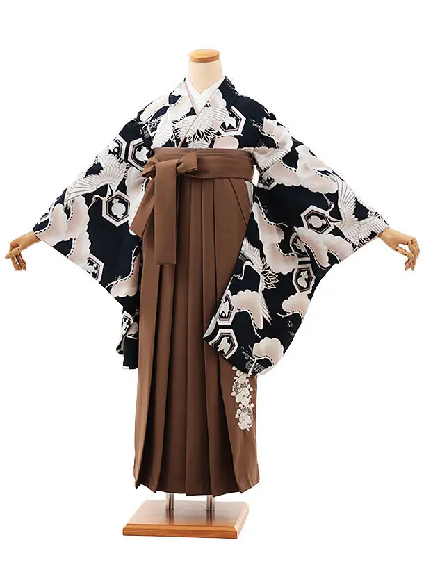 卒業式袴レンタルh837 Modern Antena 紺×茶色袴