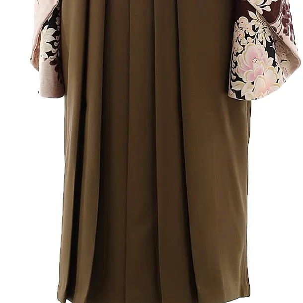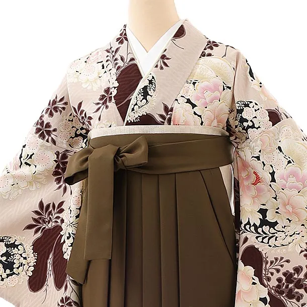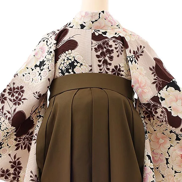 卒業式袴レンタルh842 NATURAL BEAUTY ベージュ花紋×茶色袴