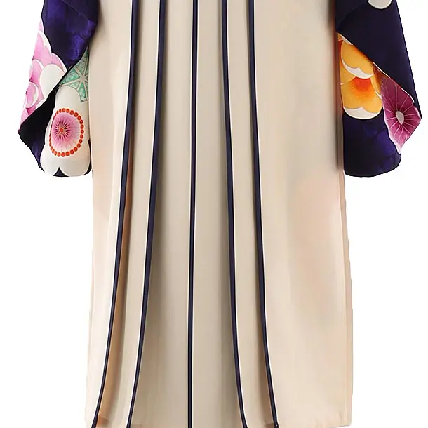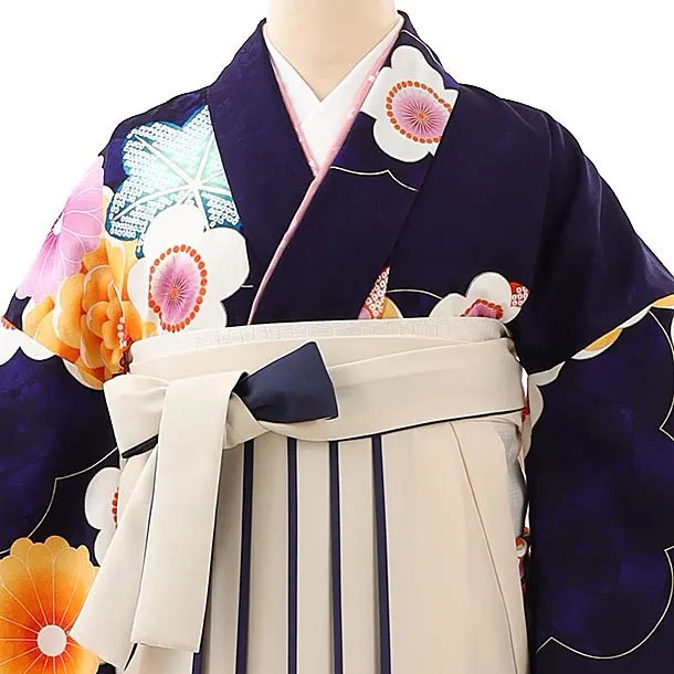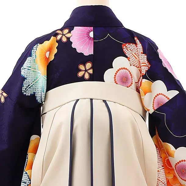 卒業式袴レンタルh844 濃紺梅×ベージュ袴