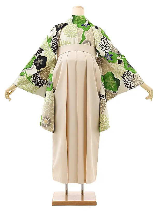 卒業式袴レンタルh846 JAPAN STYLE ベージュ花×クリーム袴