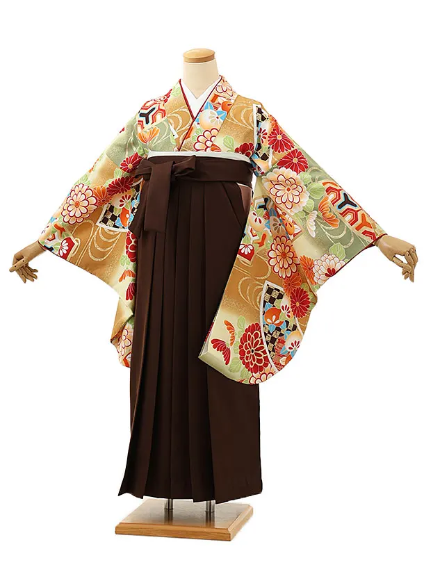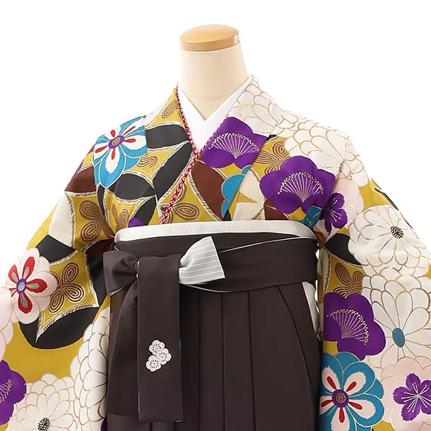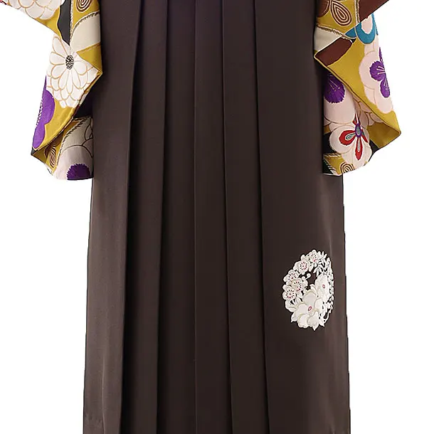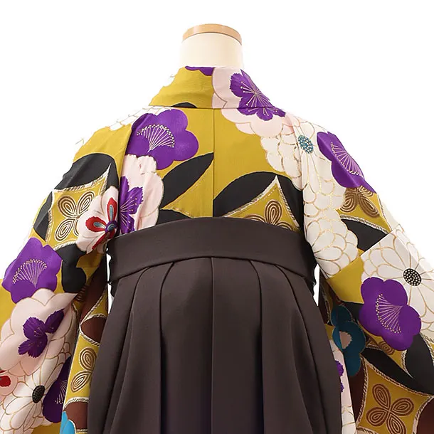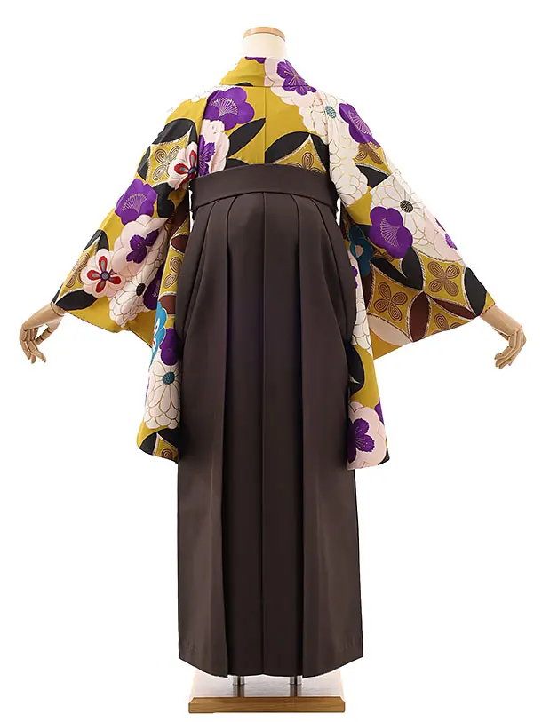 卒業式袴レンタルh850 Kansai 黄土色梅×茶色袴