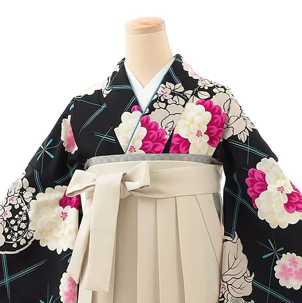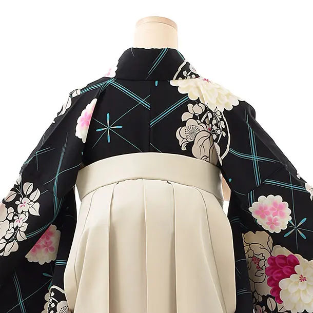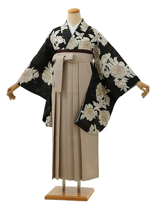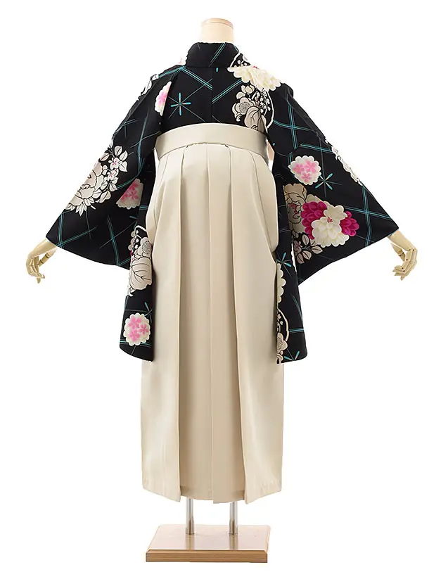 卒業式袴レンタルh851 黒花×ベージュ袴