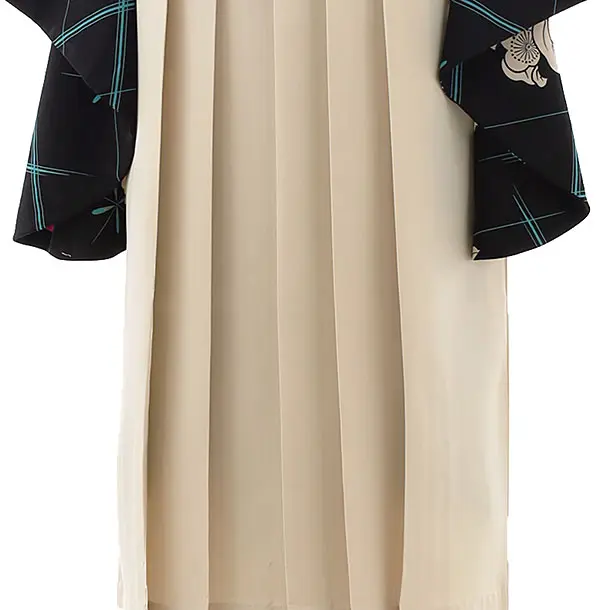卒業式袴レンタルh852 黒花×ベージュ袴