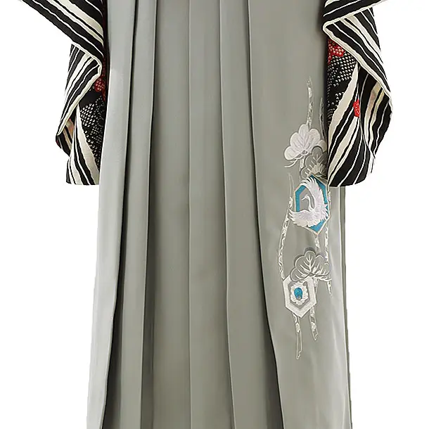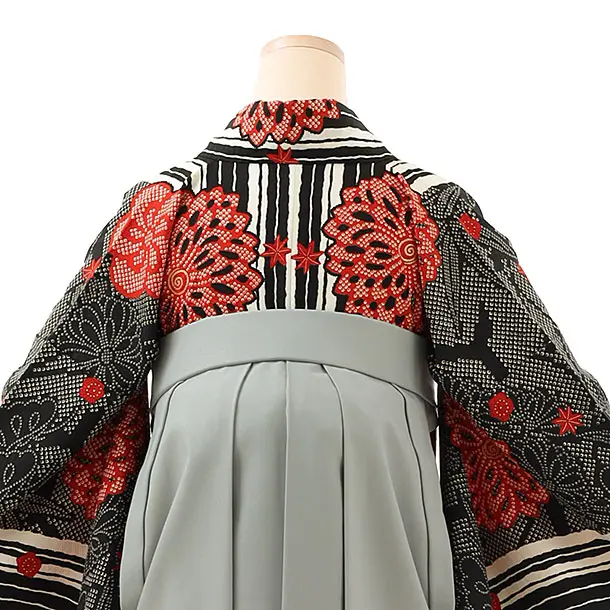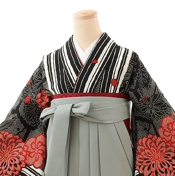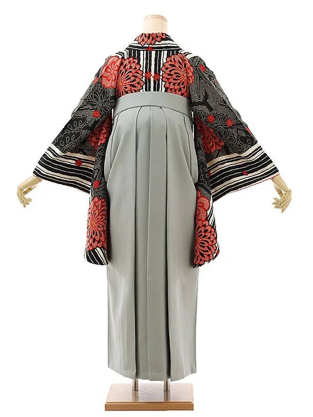卒業式袴レンタルh854 九重 黒疋田柄菊×グレー袴
