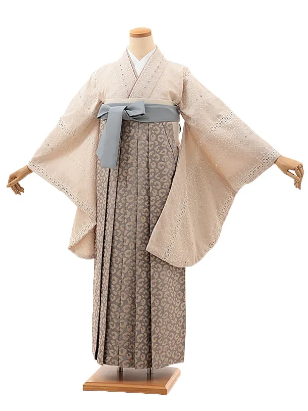 卒業式袴レンタルh857 紅一点 クリーム方身柄×グレー袴