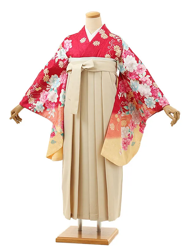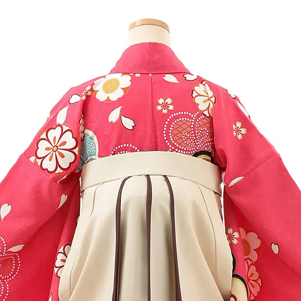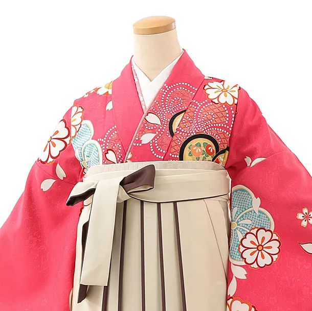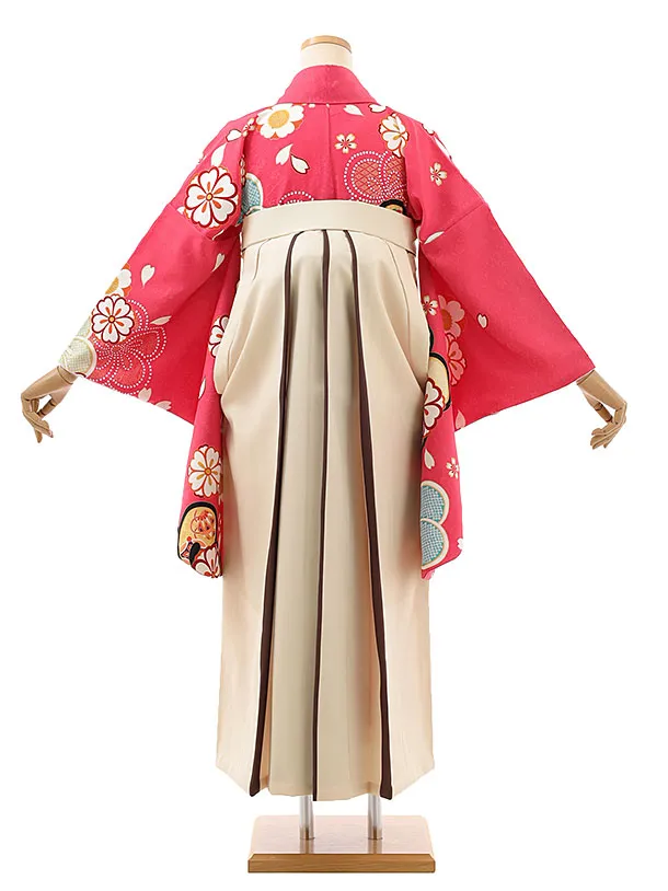 卒業式袴レンタルh865 濃ピンクねじり梅×ベージュ袴