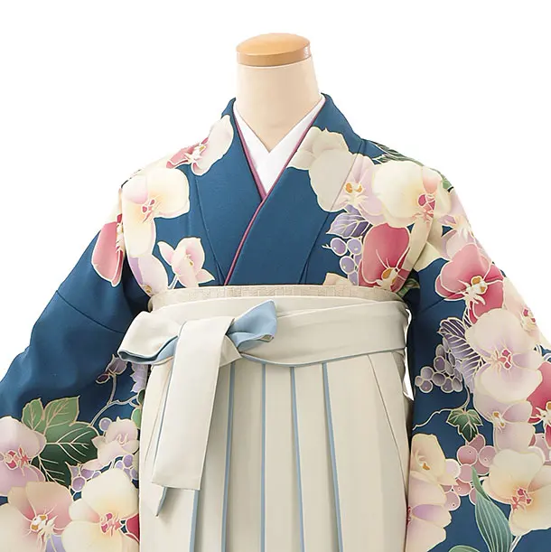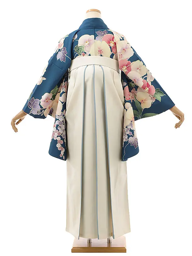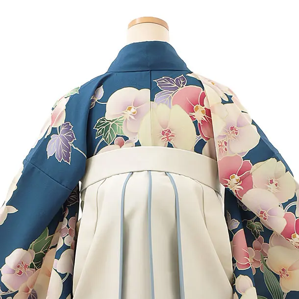 卒業式袴レンタルh867 くすみブルー胡蝶蘭×ホワイト袴