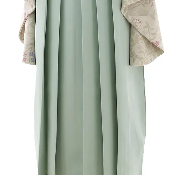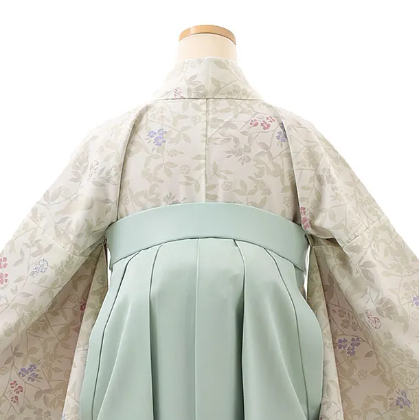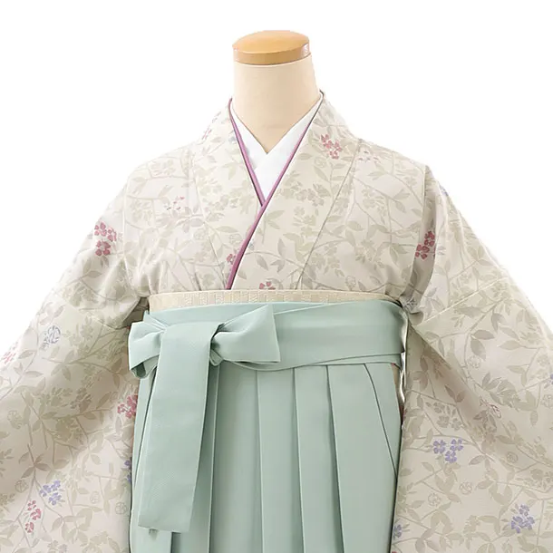 卒業式袴レンタルh872 グレージュ小花×くすみグリーン袴