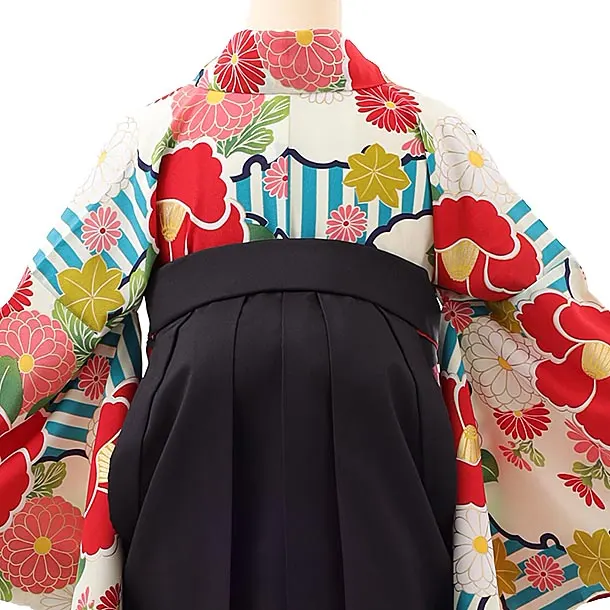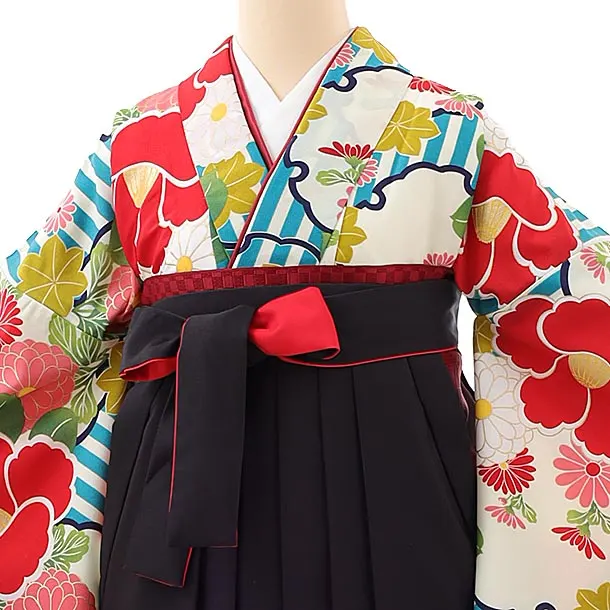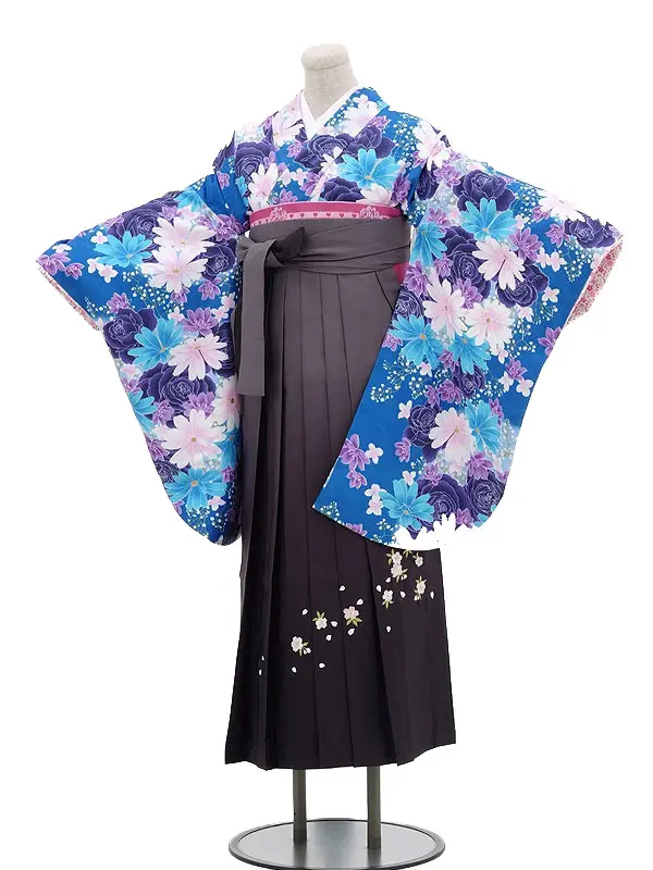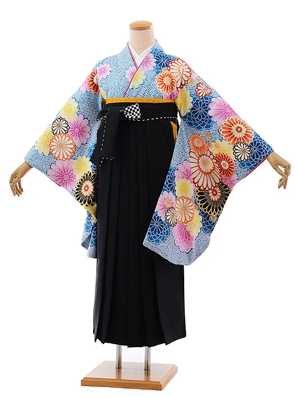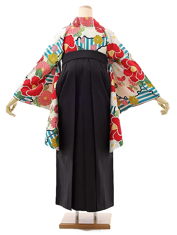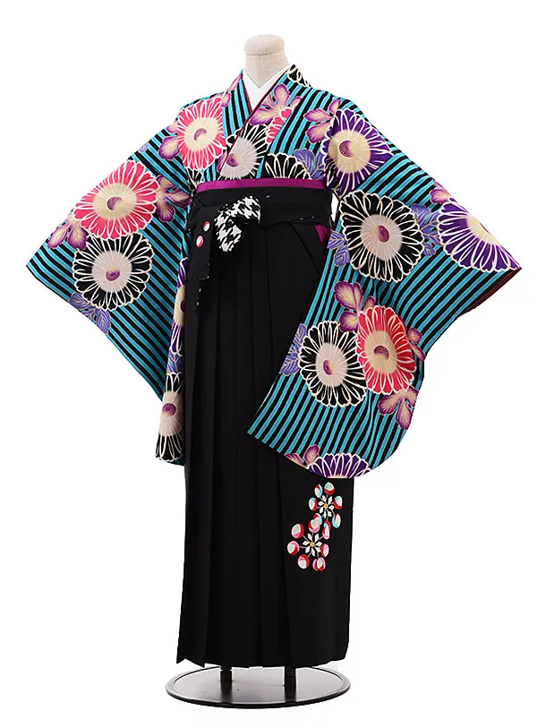 卒業式袴レンタルh878 ターコイズ花×黒袴