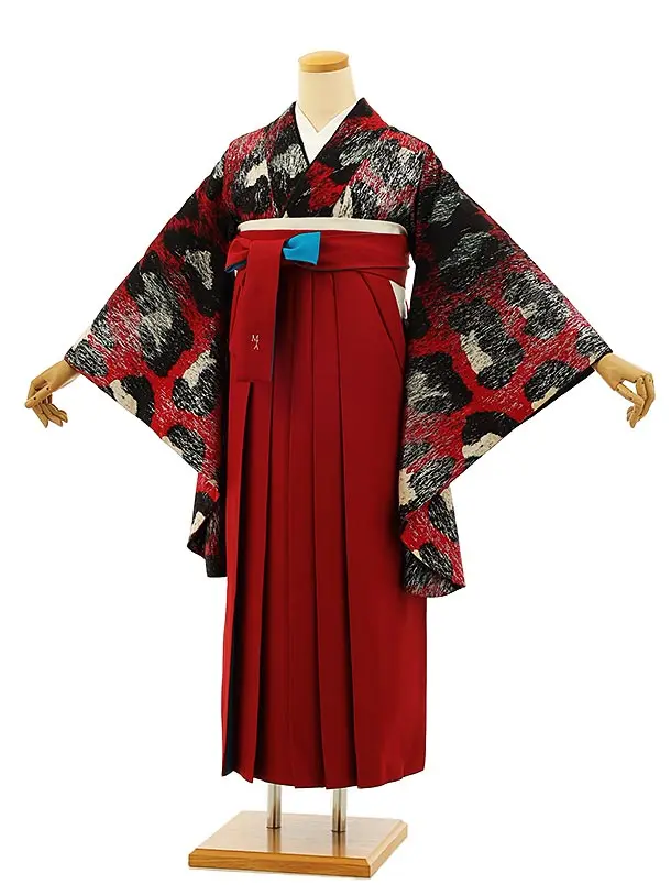 卒業式袴h886 モダンアンテナ Leopard(豹)赤×エンジ/ターコーイズ