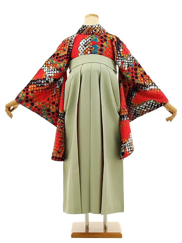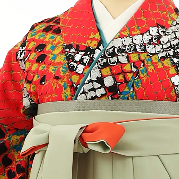 ※袴のプリーツ部分はモスグリーン/オレンジの切り返しになっています。