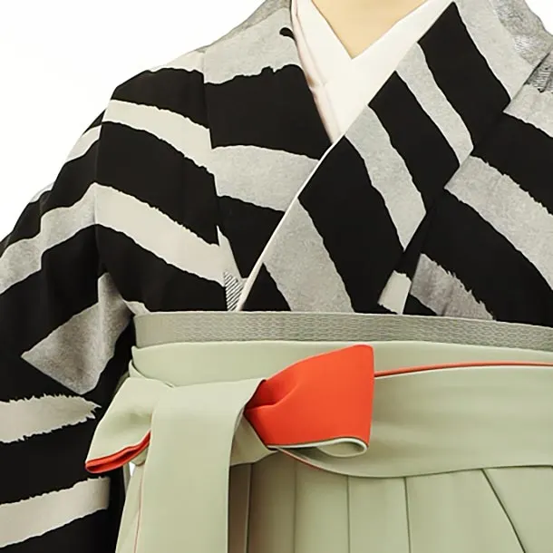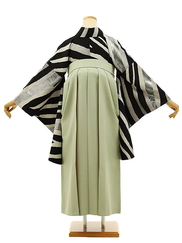 卒業式袴h890 モダンアンテナ Zebra(シマウマ)白黒×モスグリーン
