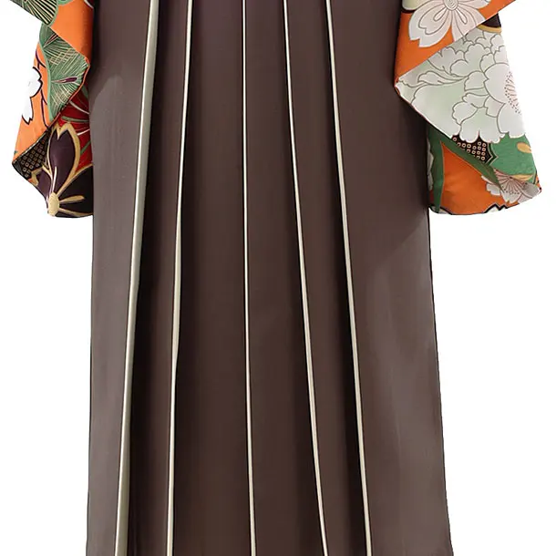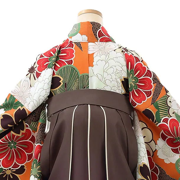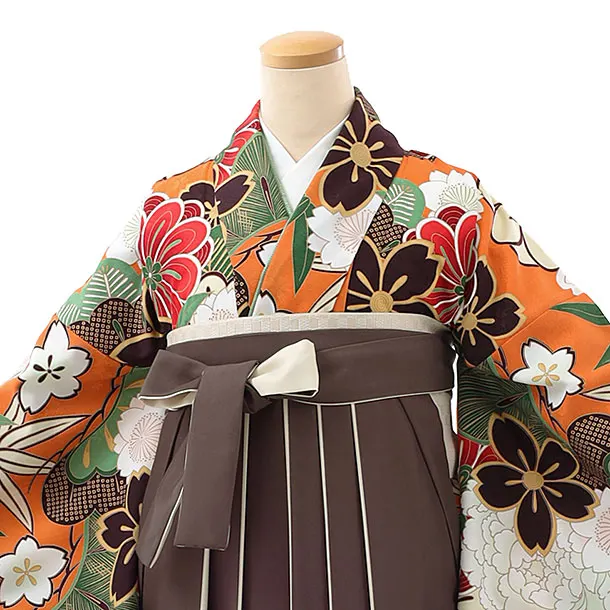 卒業式袴レンタルh893 オレンジ花×茶色袴