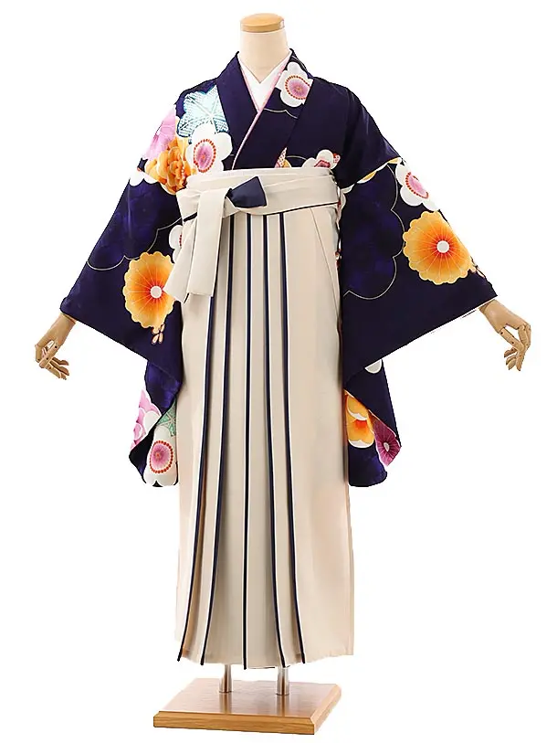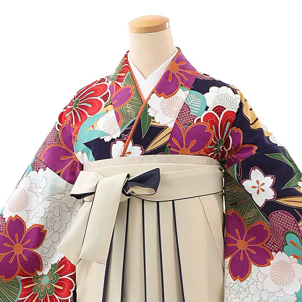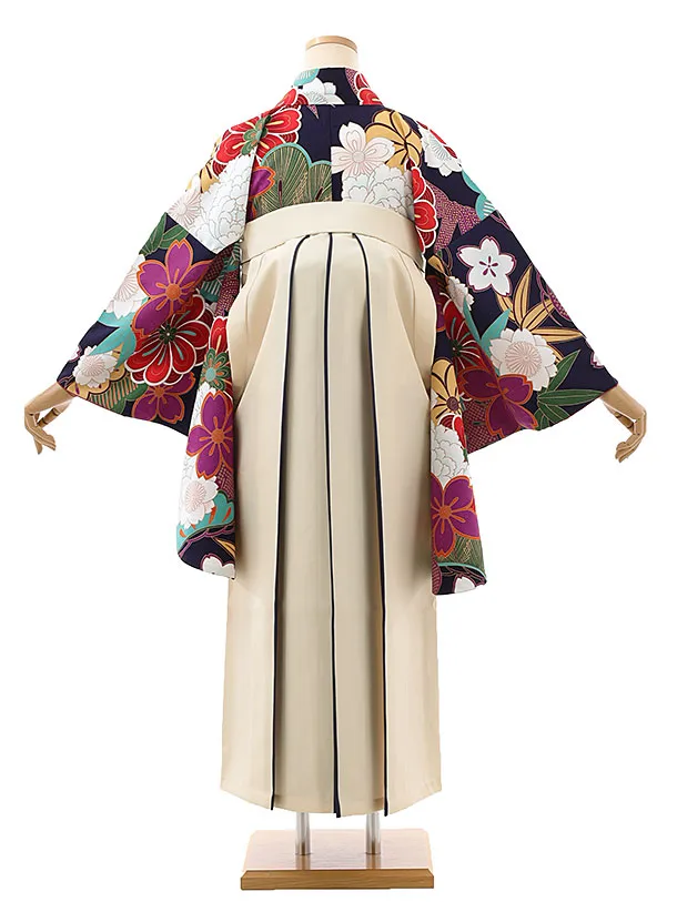 卒業式袴レンタルh897 紺花×ベージュ袴
