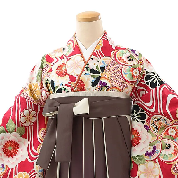 卒業式袴レンタルh902 赤ねじり梅×茶色袴