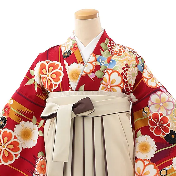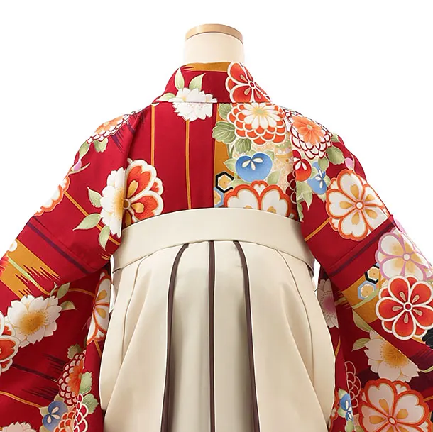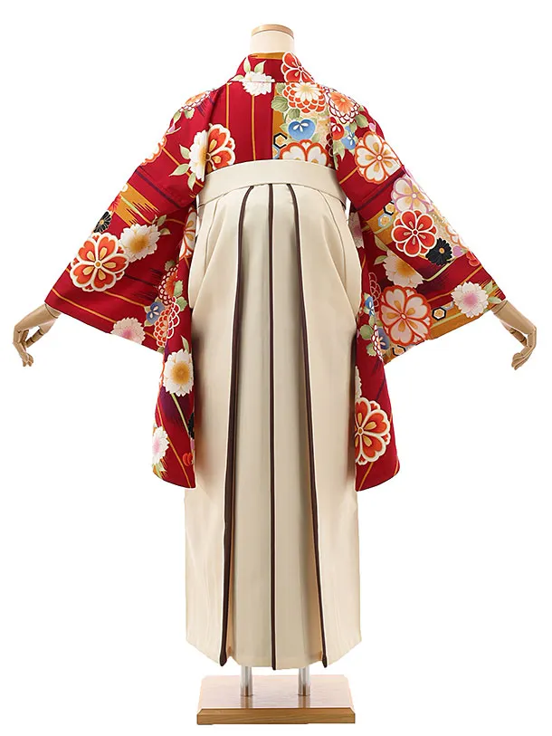 卒業式袴レンタルh907 赤矢絣×ベージュ袴