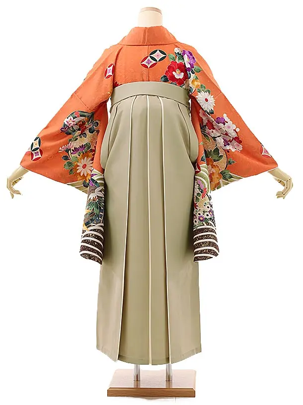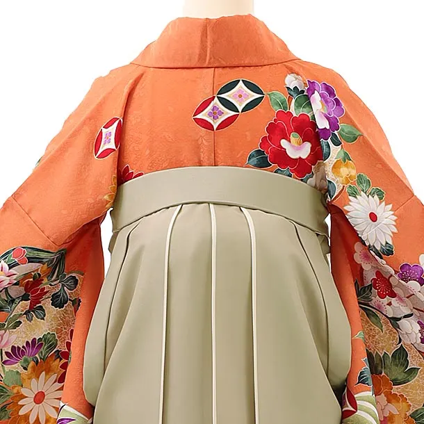 卒業式袴レンタルh909 淡オレンジ四季花×ベージュ袴