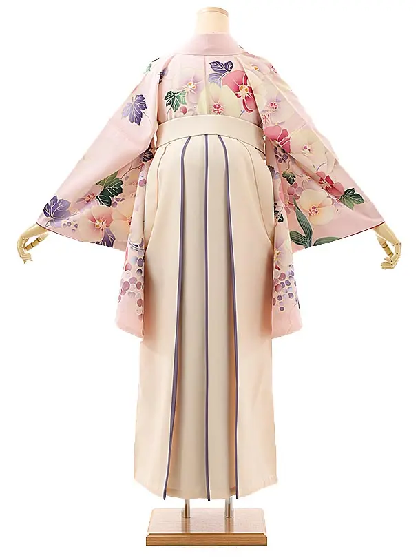 卒業式袴レンタルh913 淡ピンク胡蝶蘭×ベージュ袴