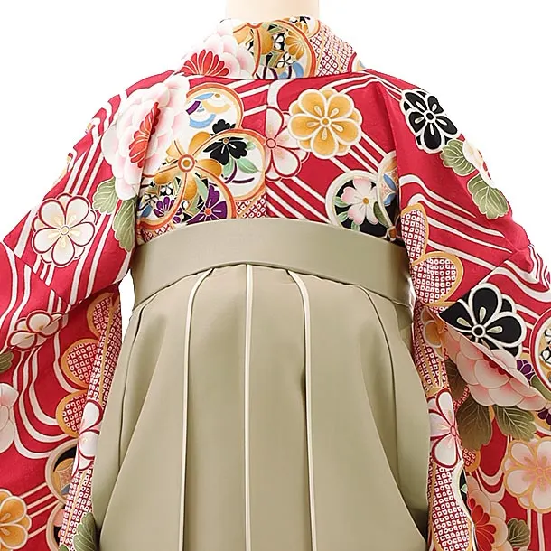 卒業式袴レンタルh918 赤ねじり梅×ベージュ袴