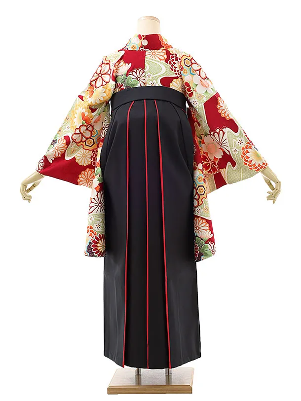 卒業式袴レンタルh919 赤波に菊×黒袴