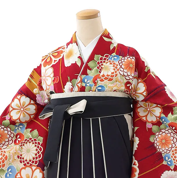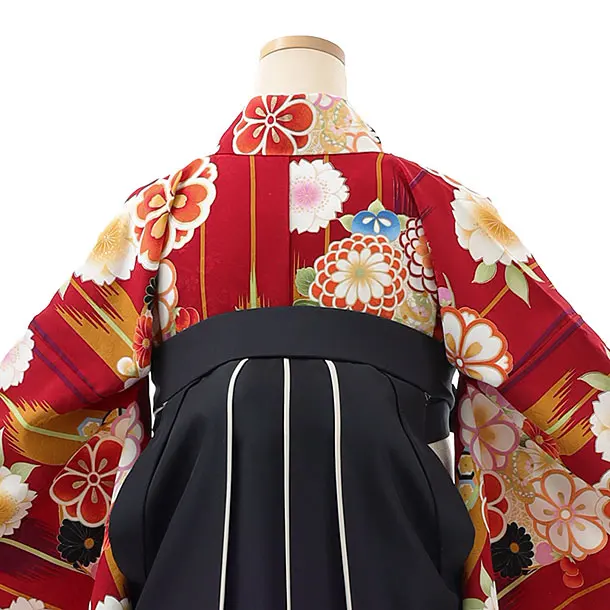 卒業式袴レンタルh921 赤矢絣桜×黒袴
