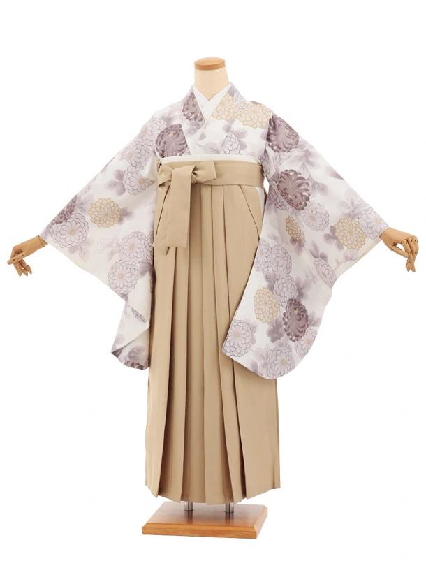 卒業式袴レンタルh923 白紫梅橘×ベージュ袴