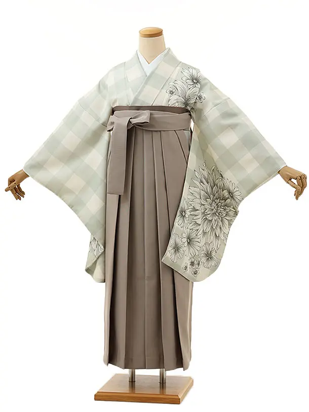卒業袴レンタルh934 グリーン花×アイボリー袴