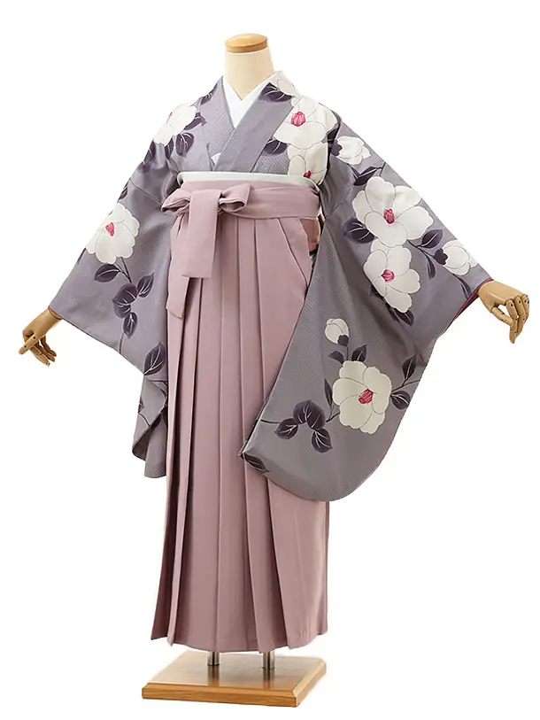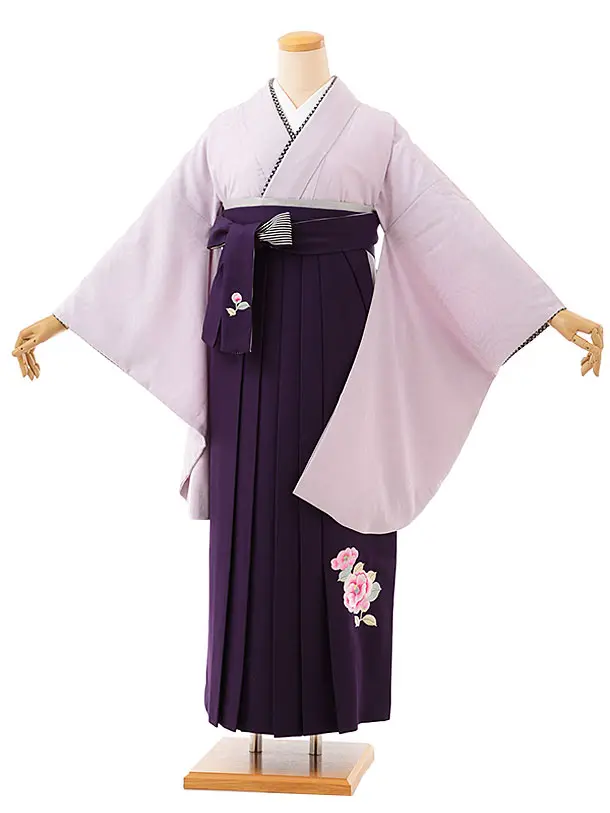 卒業袴レンタルh936 パープル花×くすみピンクパープル袴