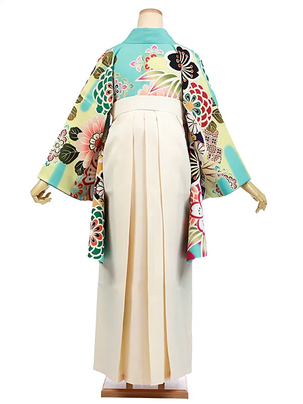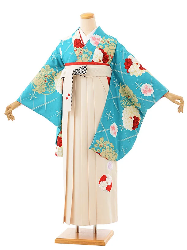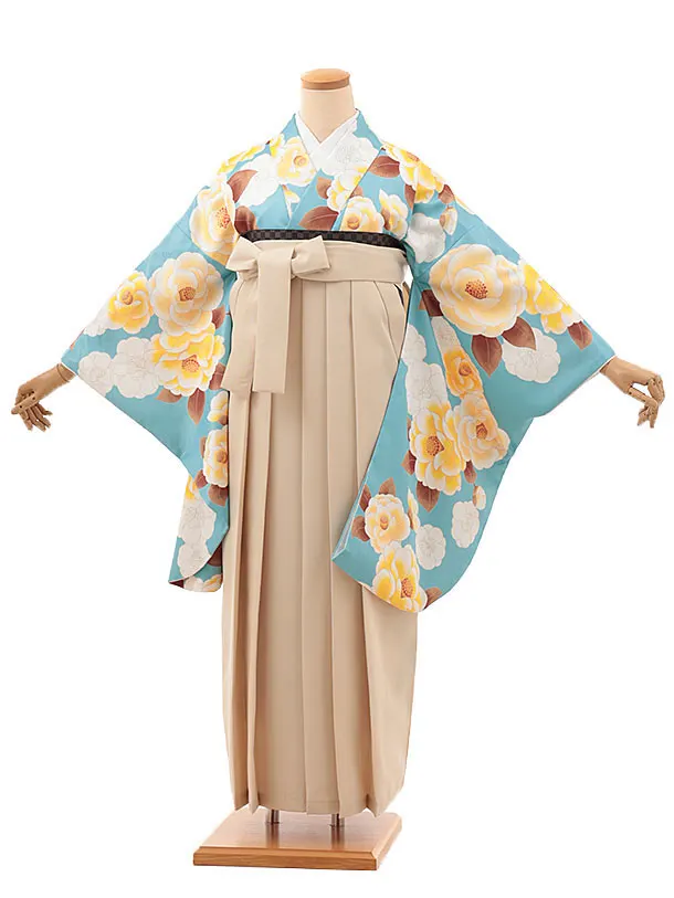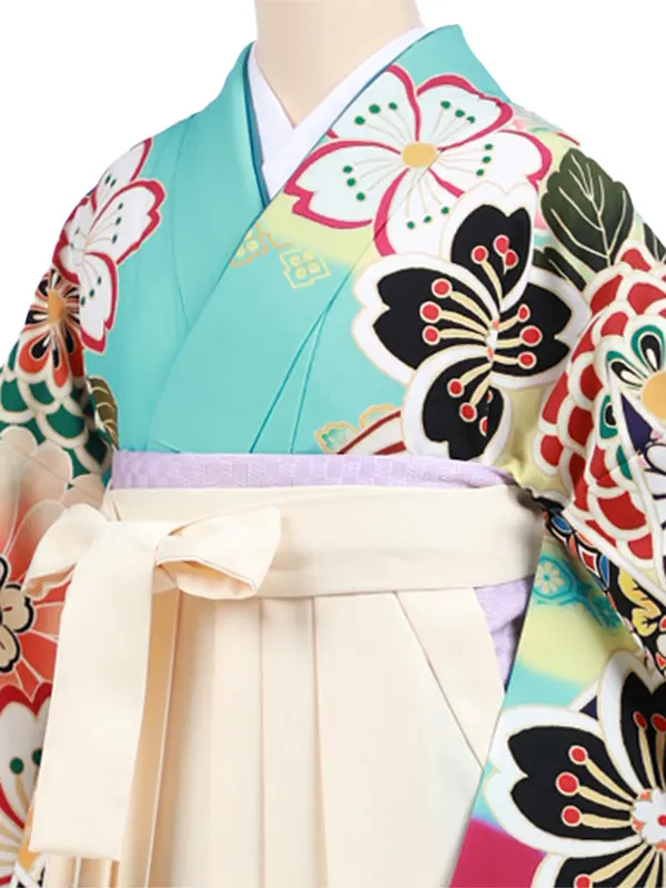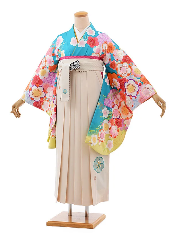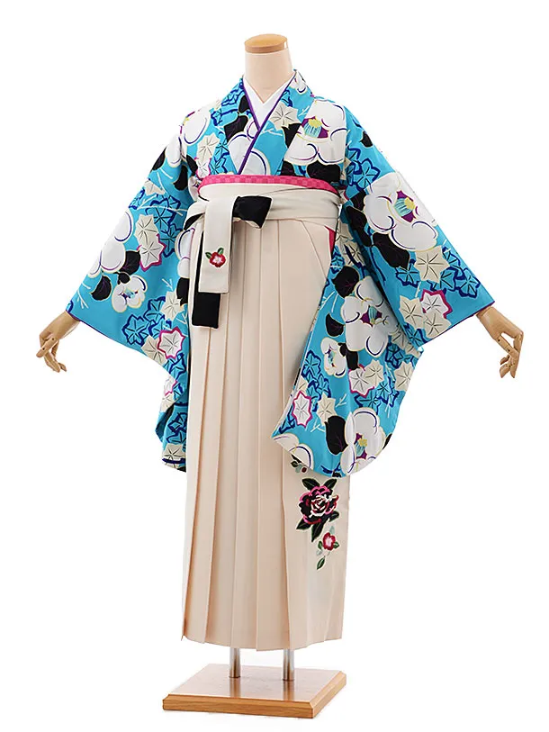 卒業袴レンタルh942 水色 桜菊×アイボリー袴