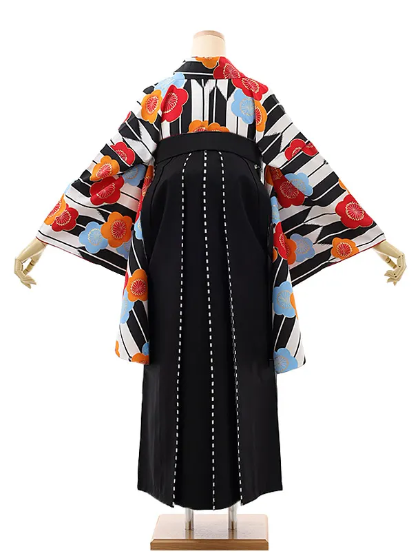卒業袴レンタルh951 黒白矢柄梅×黒袴