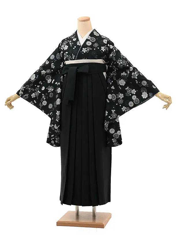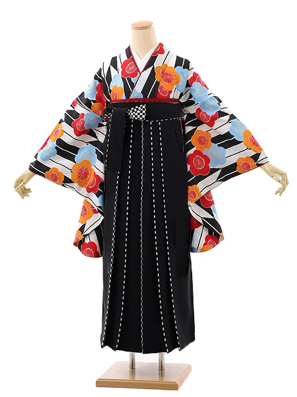 卒業袴レンタルh953 黒白矢柄梅×黒袴