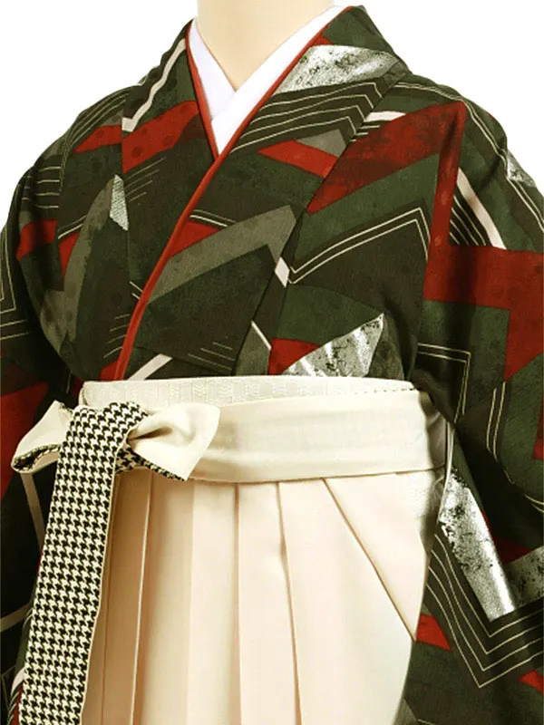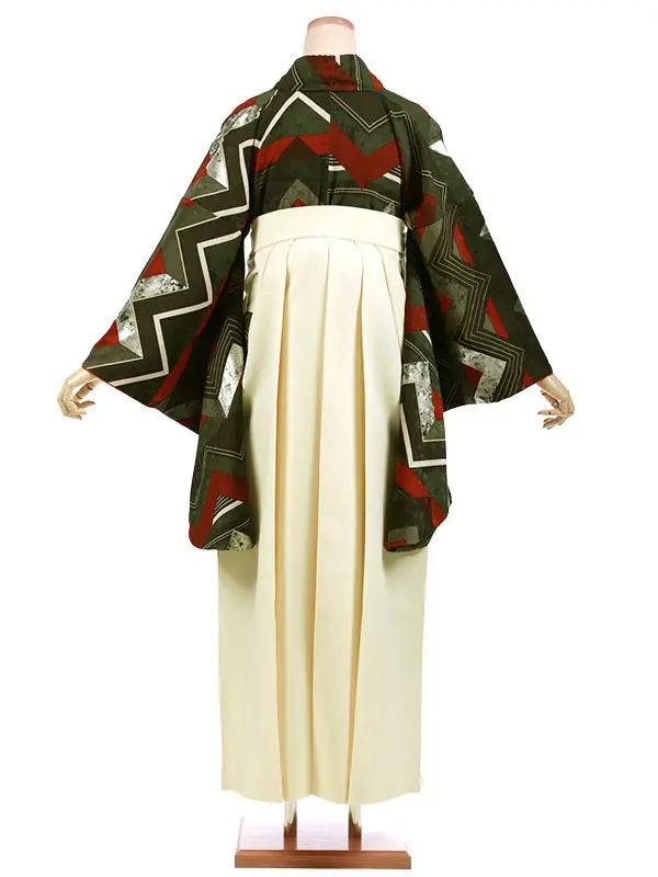 卒業袴レンタルh963 カーキジグザグ×アイボリー袴