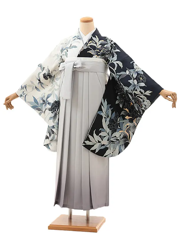 卒業袴レンタルh976 紺地花×グレー袴