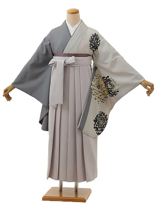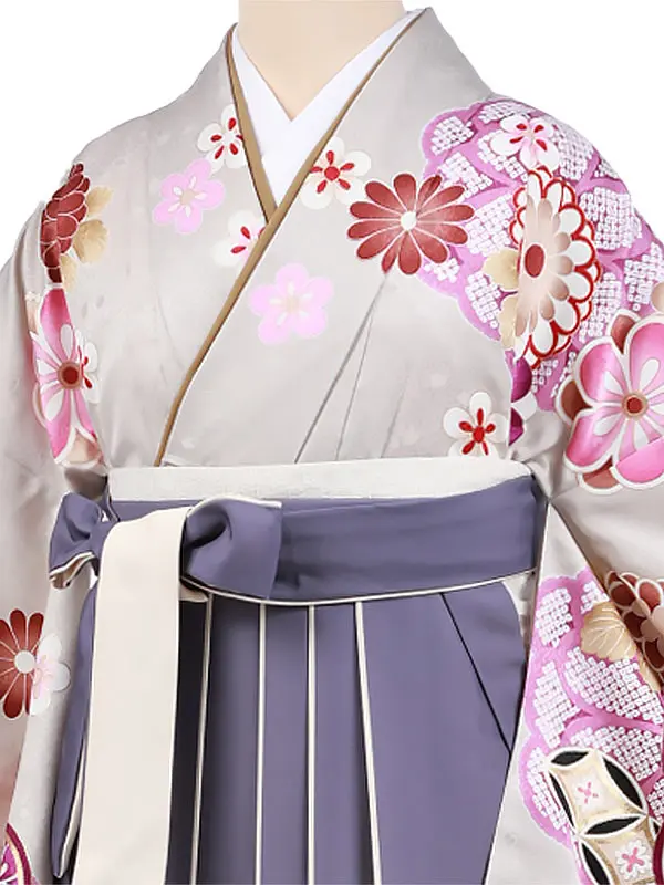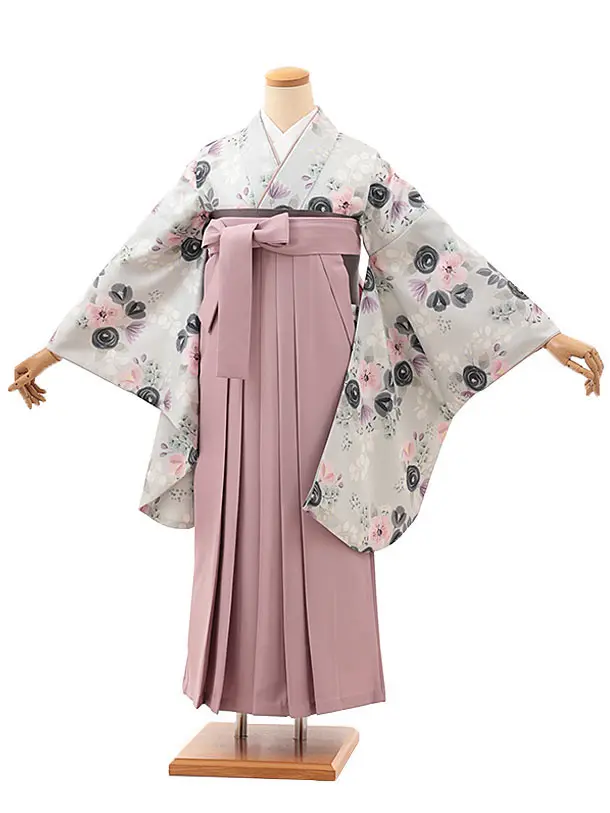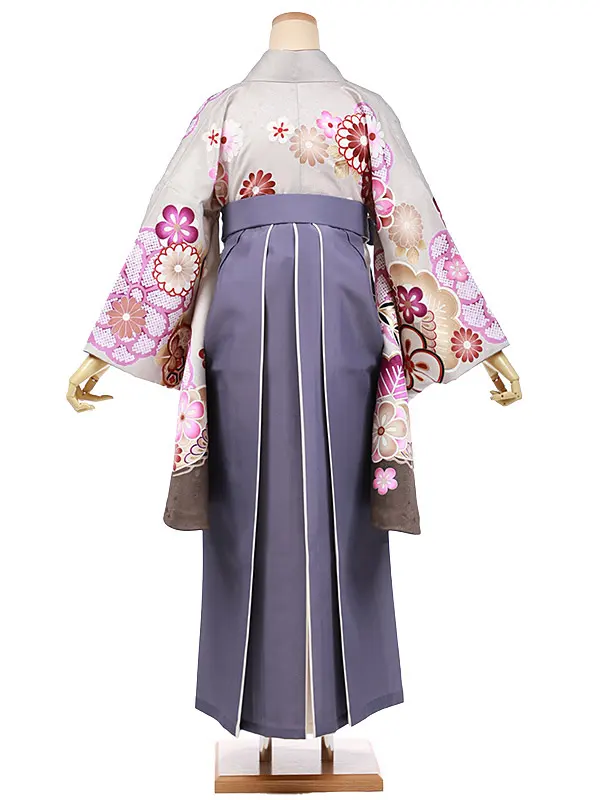 卒業袴レンタルh977 グレー地古典花×パープル袴