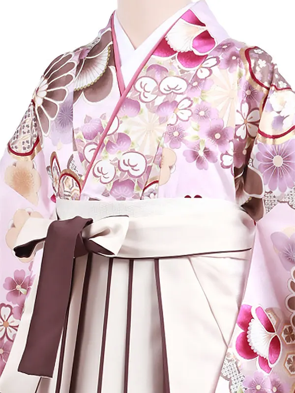 卒業袴レンタルh979 薄ピンク花×アイボリー袴