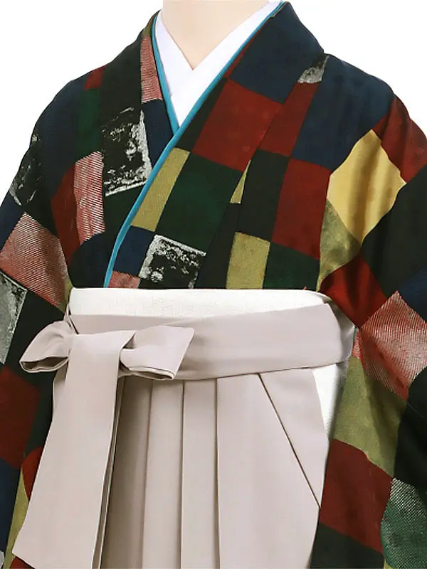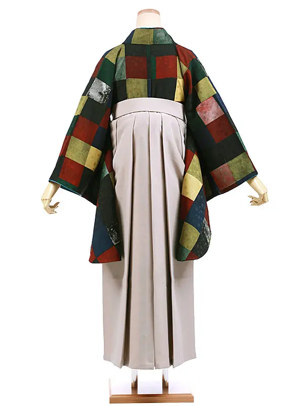 卒業袴レンタルh981 カラフル市松×グレージュ袴