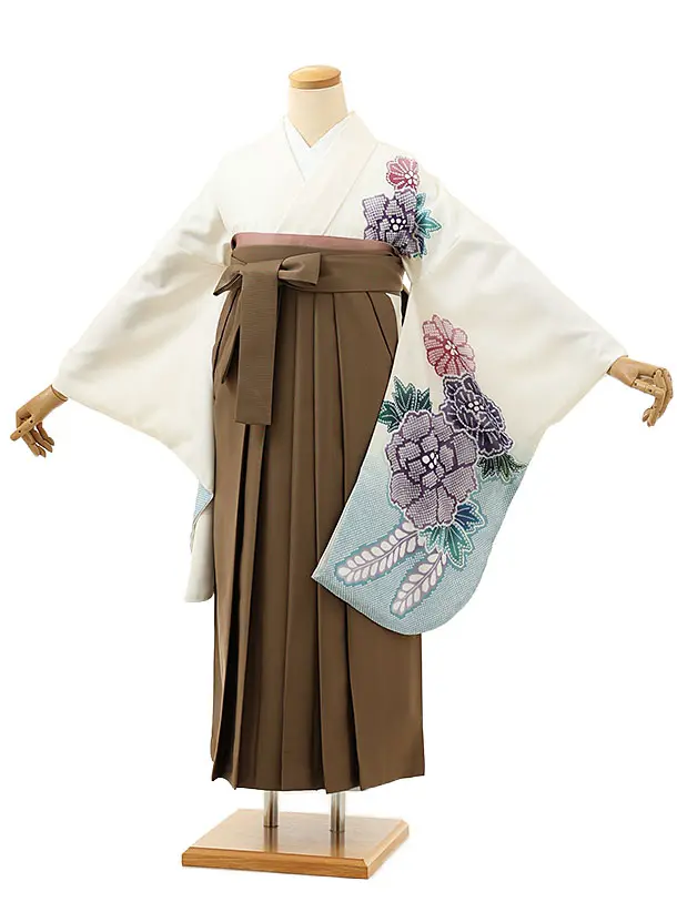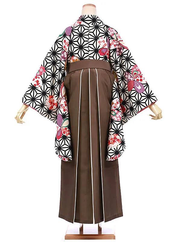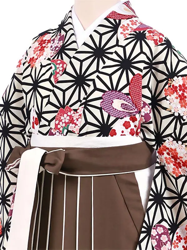 卒業袴レンタルh982 白地麻の葉桜×茶色袴