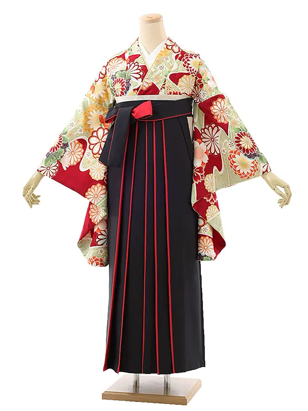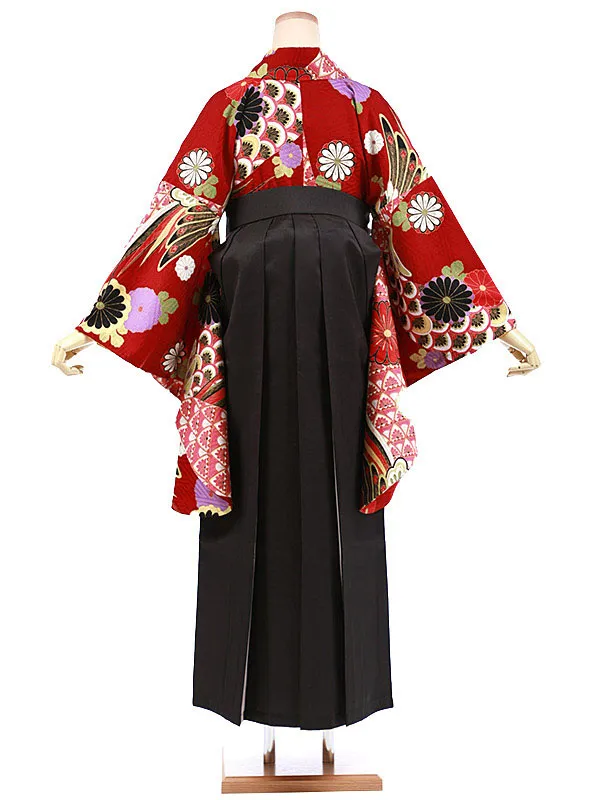卒業袴レンタルh983 濃赤地羽根菊×黒袴