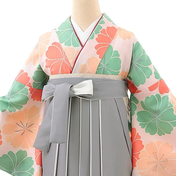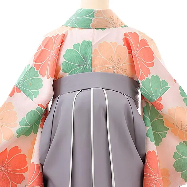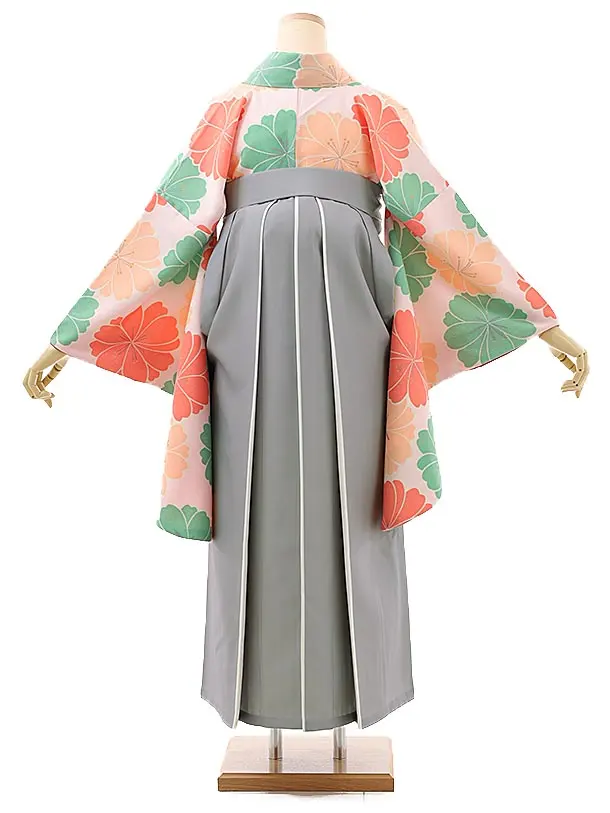 卒業袴レンタルh984 ピンク大花×グレー袴