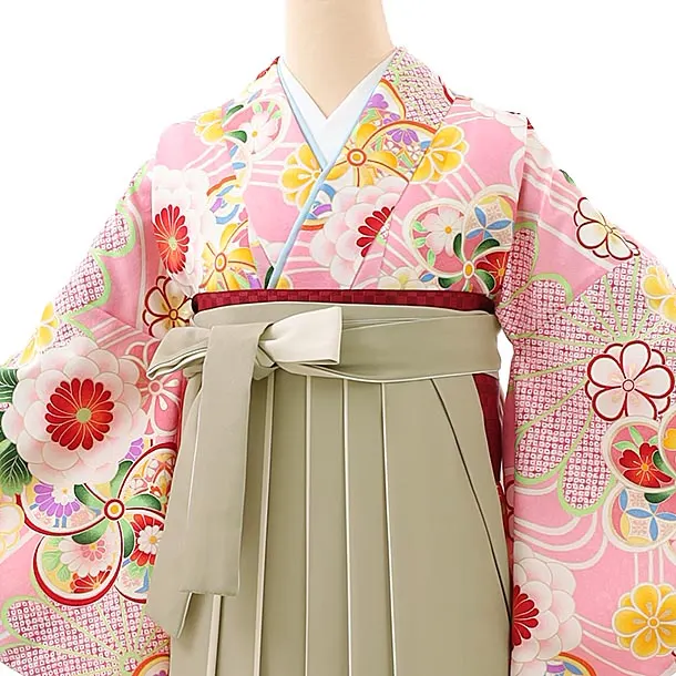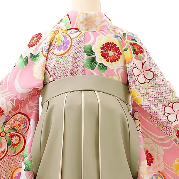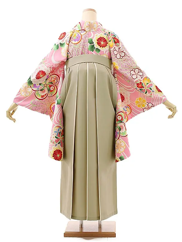 卒業袴レンタルh989 ピンクねじり梅×ベージュ袴