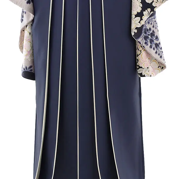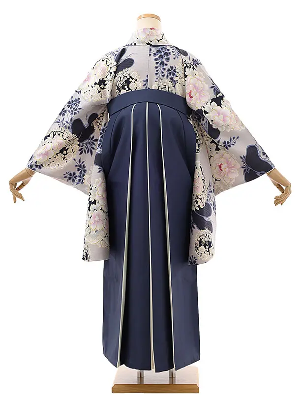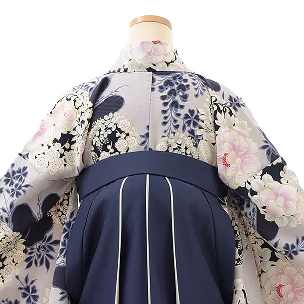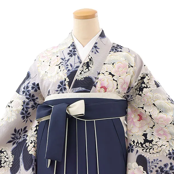 卒業袴レンタルh992 NATURAL BEAUTY グレー花×紺袴