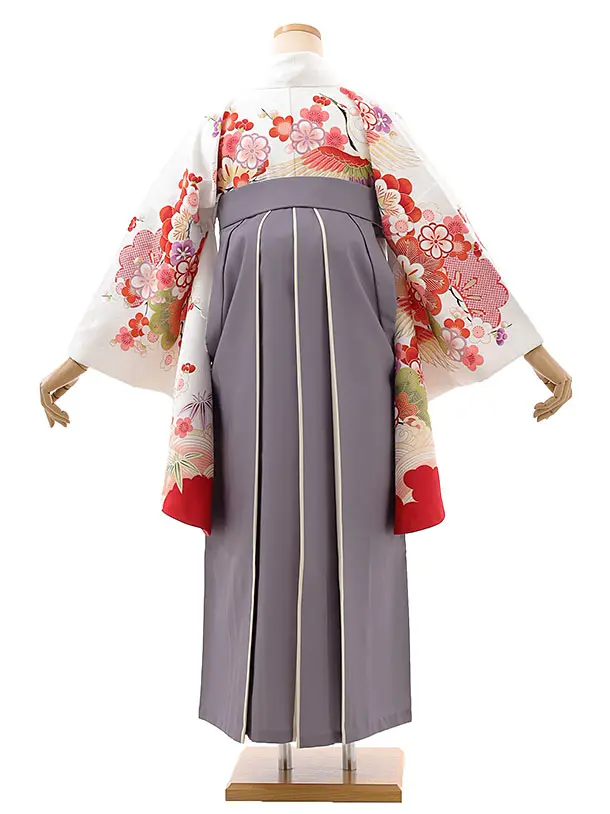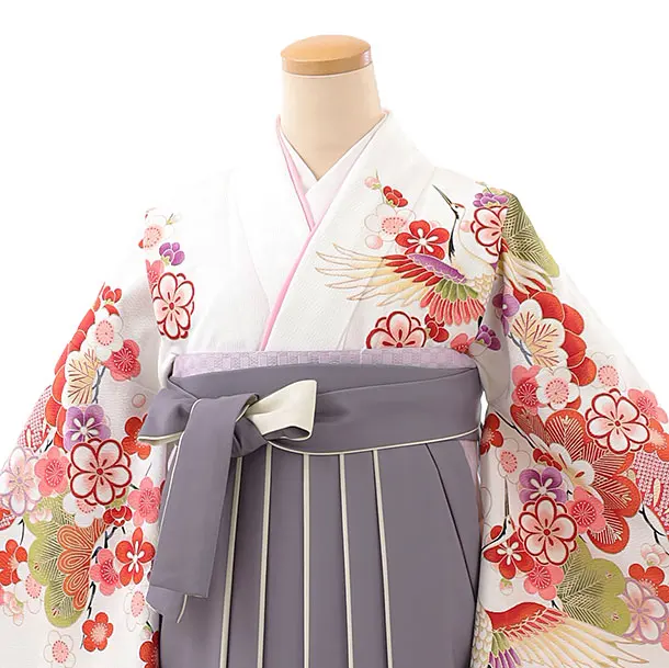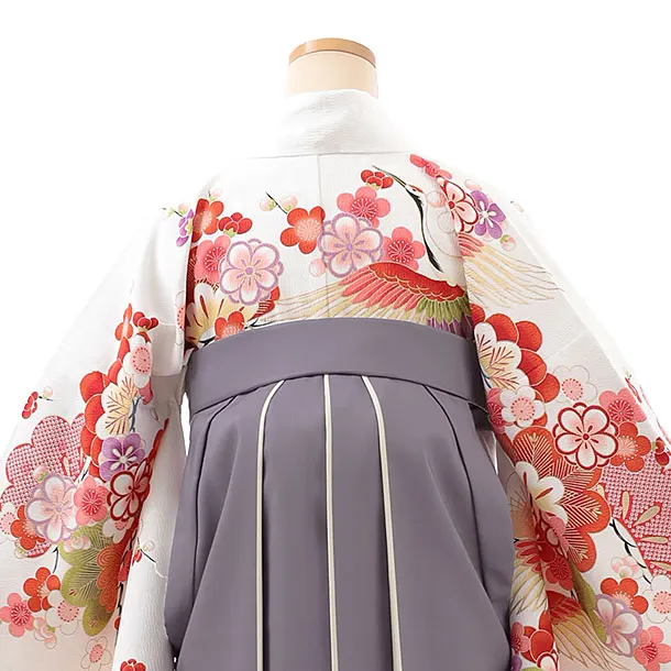 卒業袴レンタルh993 白地鶴×ラベンダー袴