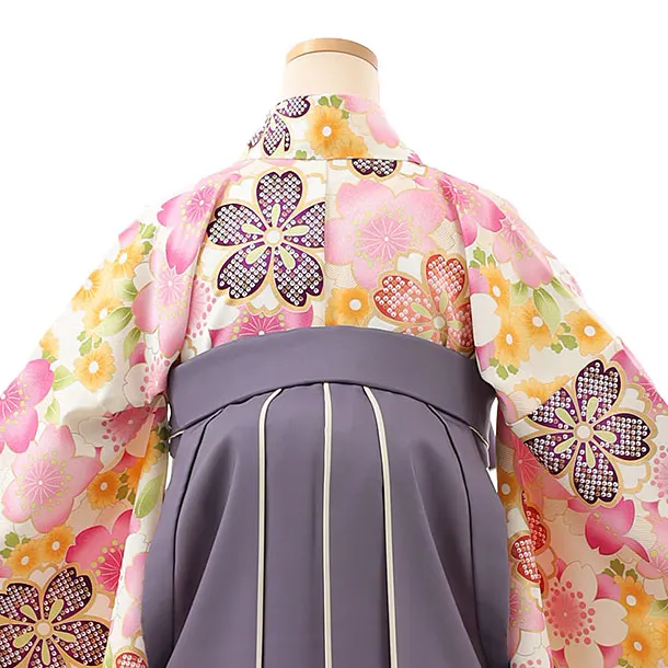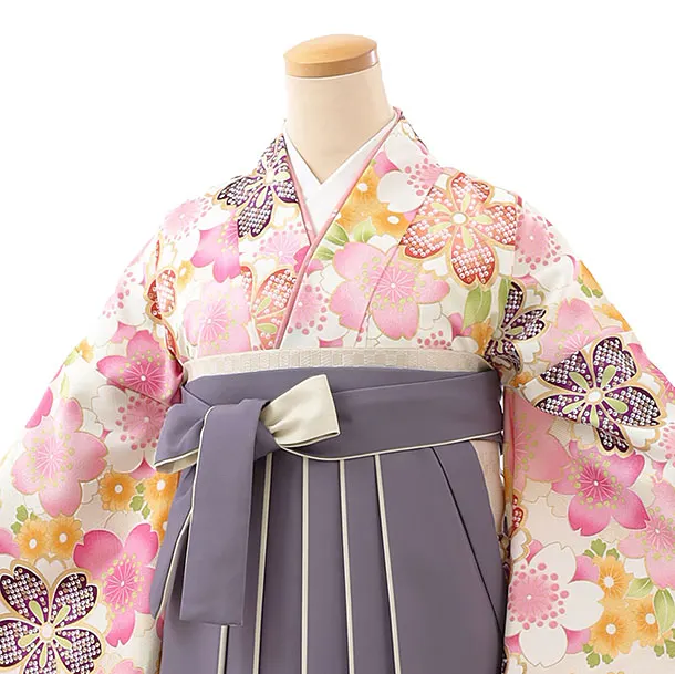 卒業袴レンタルh994 白地桜づくし×ラベンダー袴