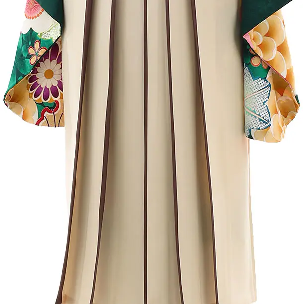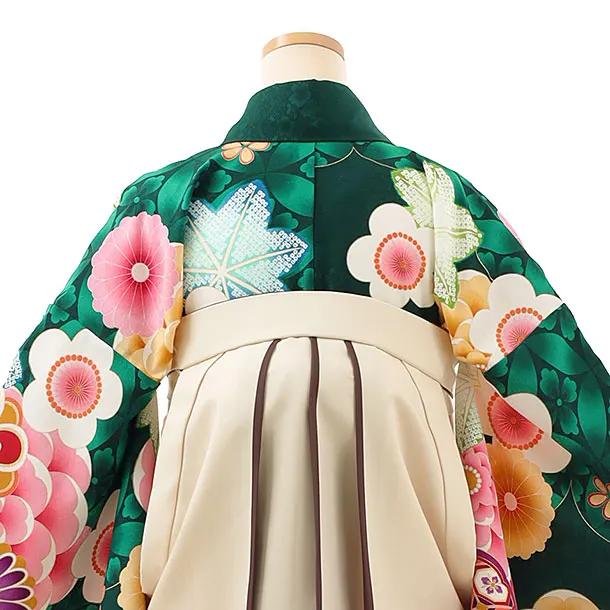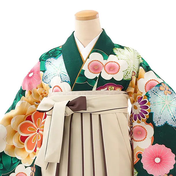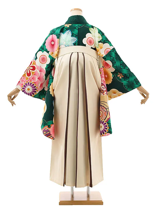 卒業袴レンタルh997 グリーン花×ベージュ袴