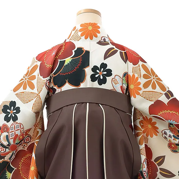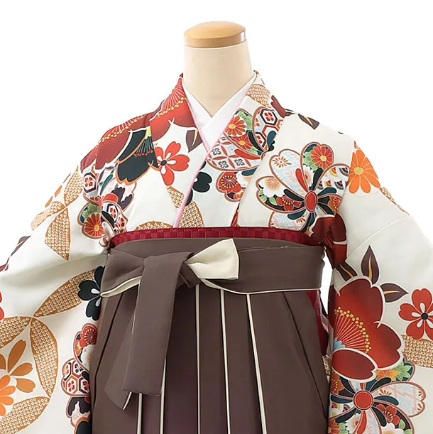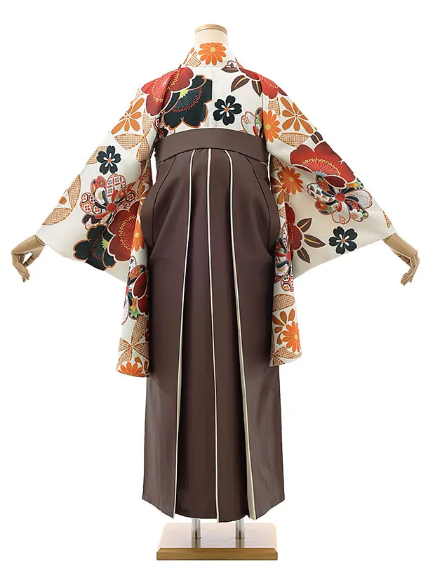 卒業袴レンタルh998 白地古典柄×茶色袴