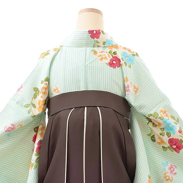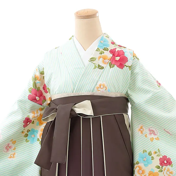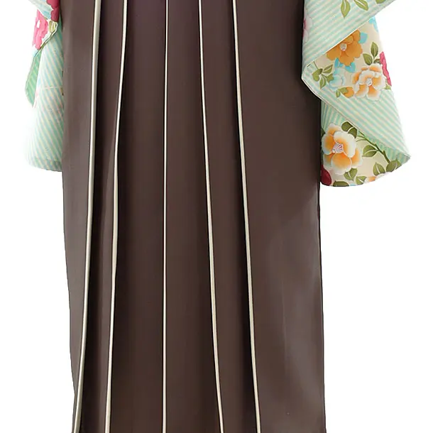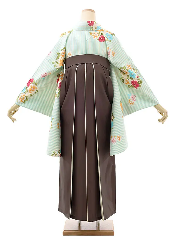 卒業袴レンタルh1000 パステルグリーン花×茶色袴