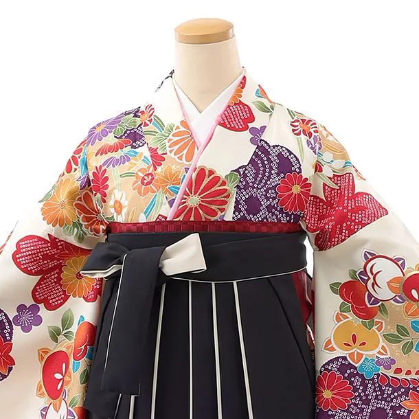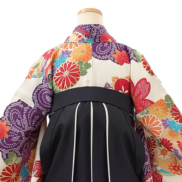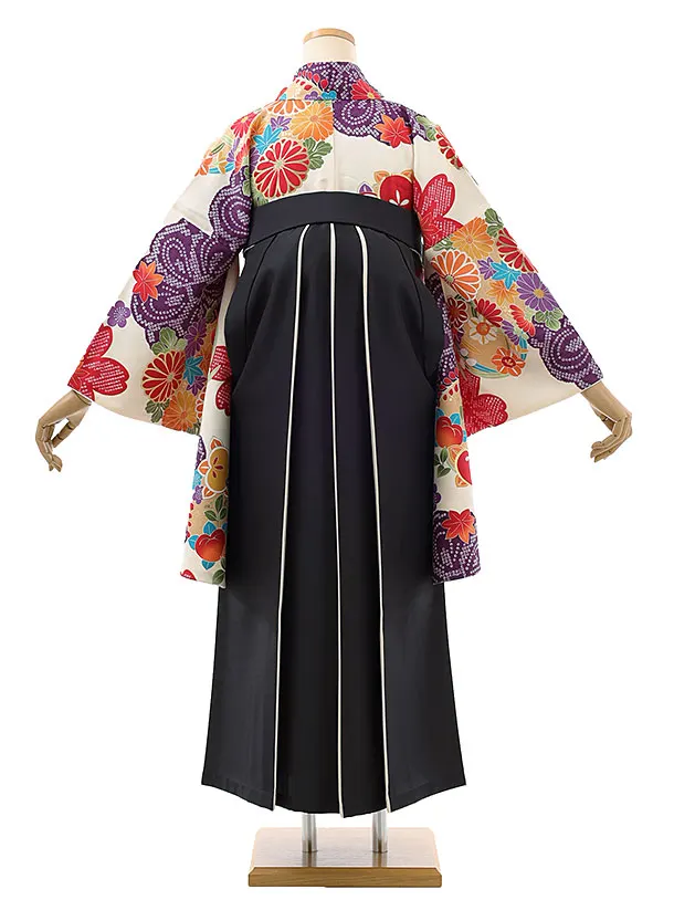 卒業袴レンタルh1001 ベージュ古典柄×黒袴