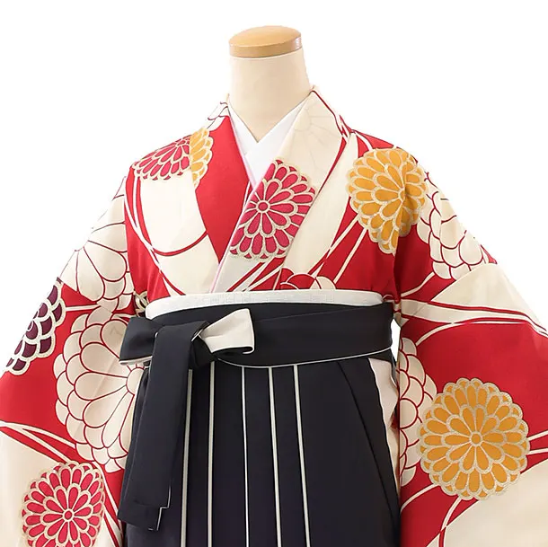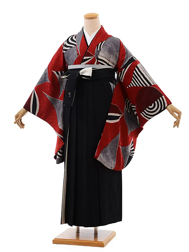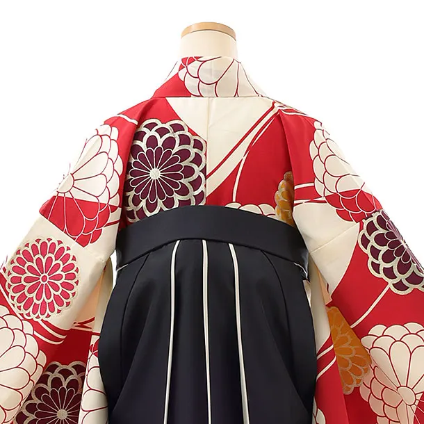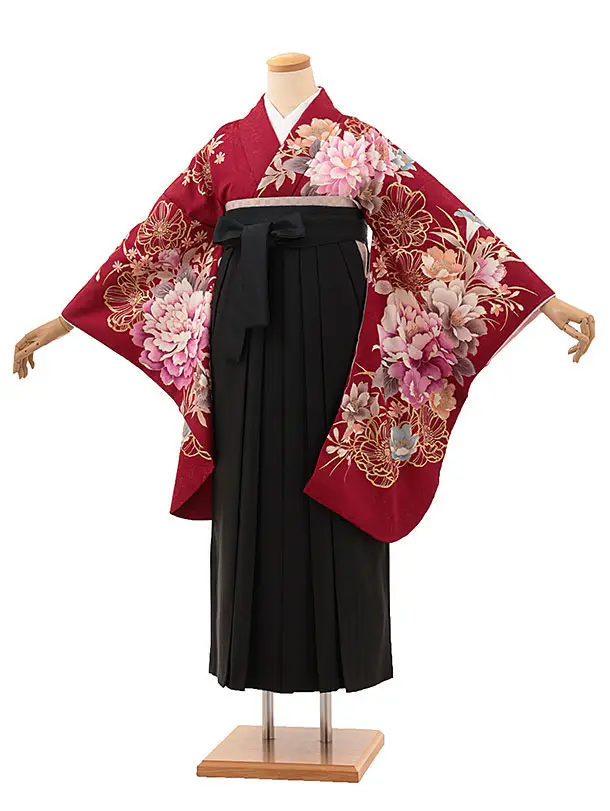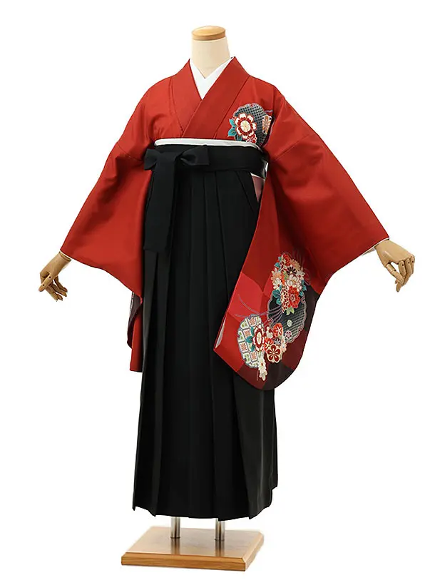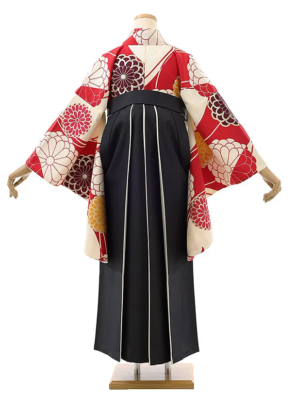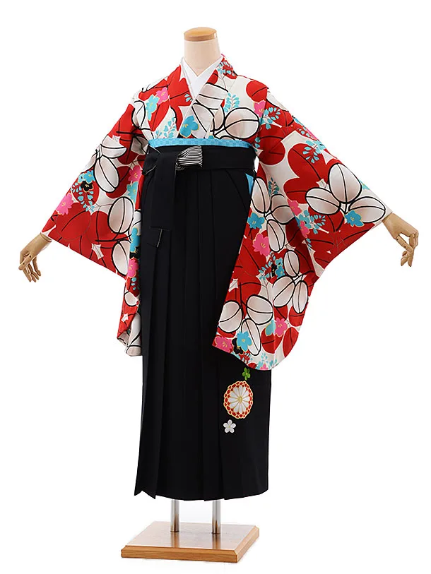 卒業袴レンタルh1002 赤白大花×黒袴