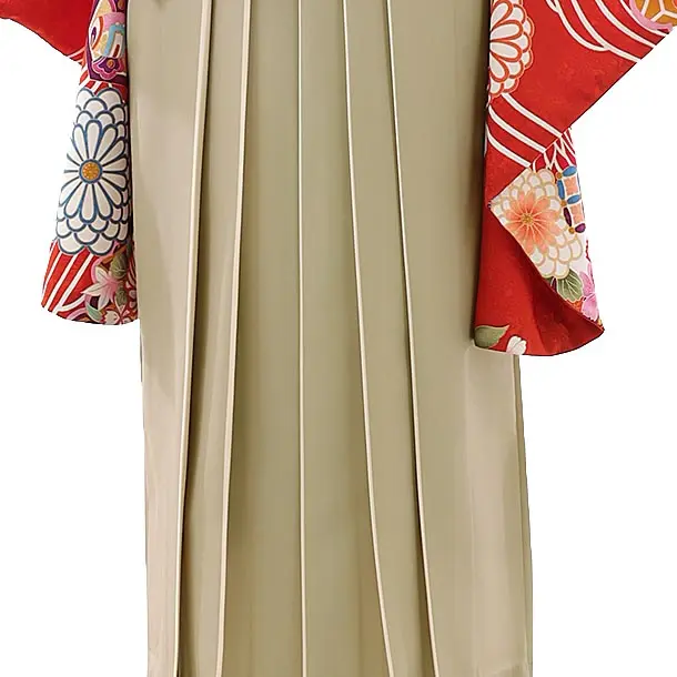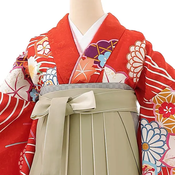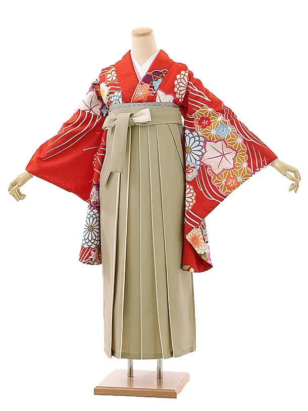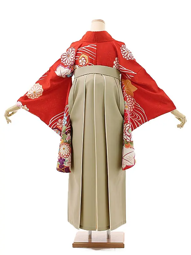 卒業袴レンタルh1009 朱赤古典花×ベージュ袴