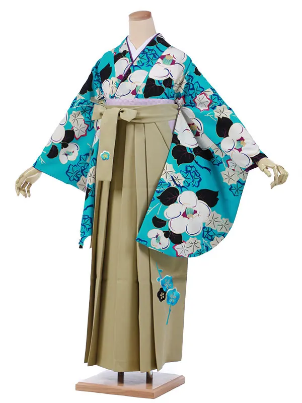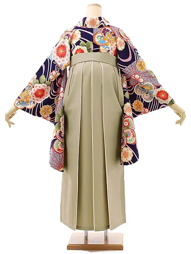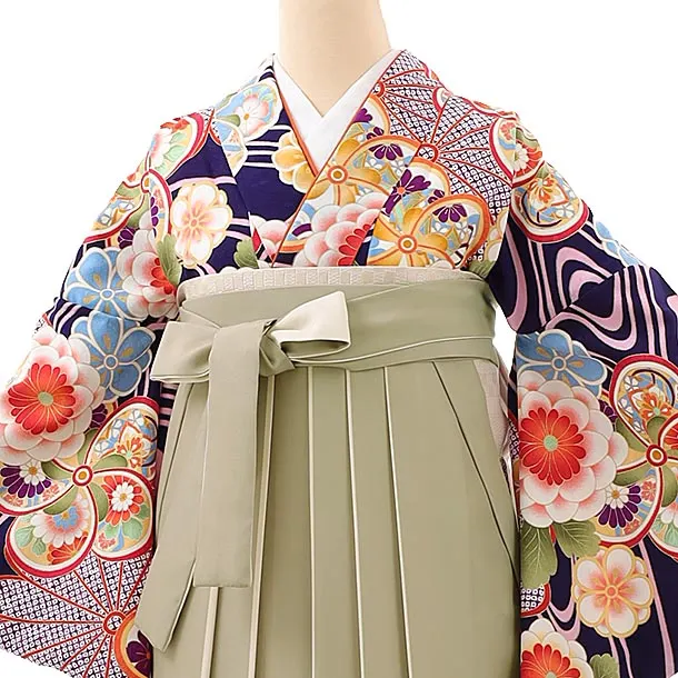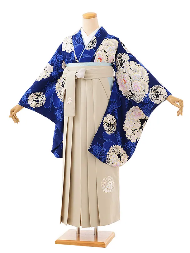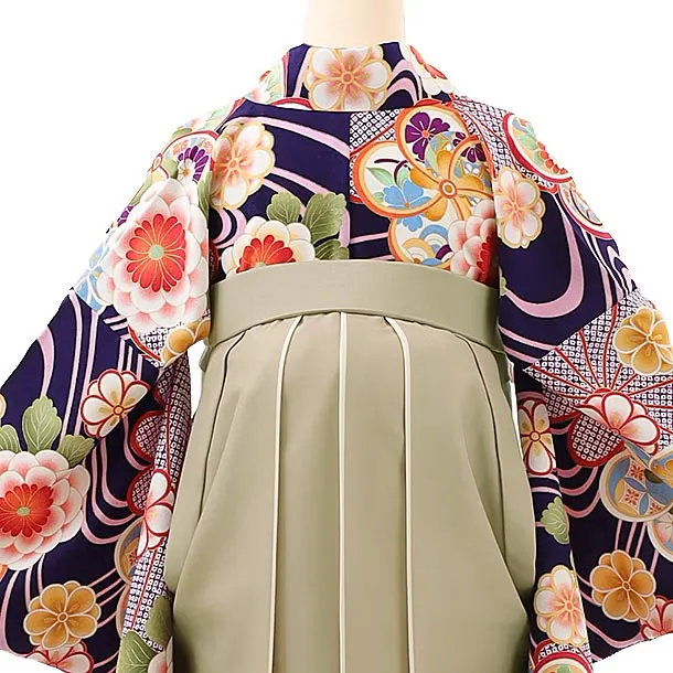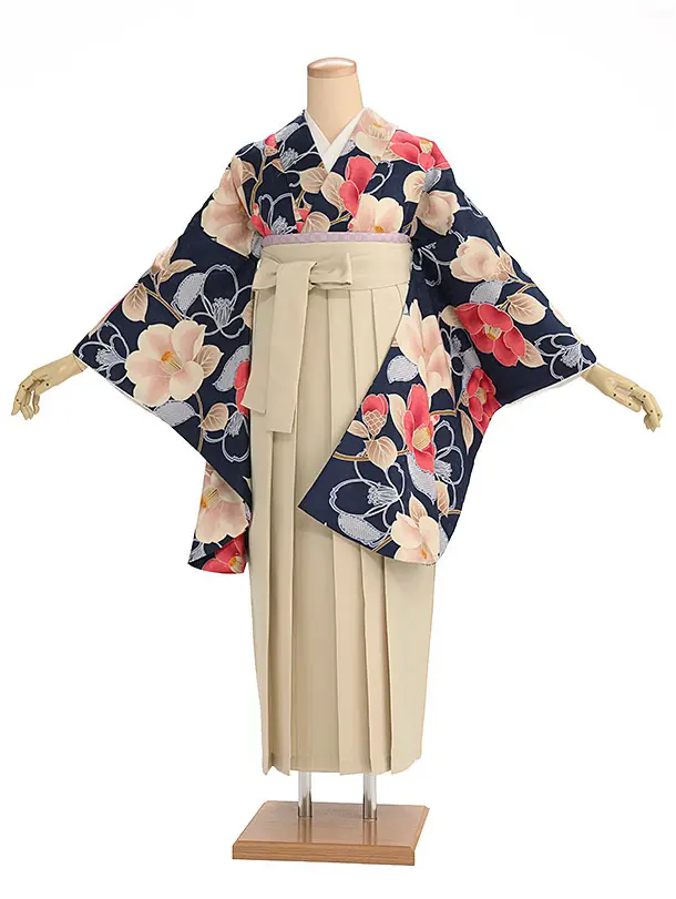 卒業袴レンタルh1012 濃紺花づくし×ベージュ袴